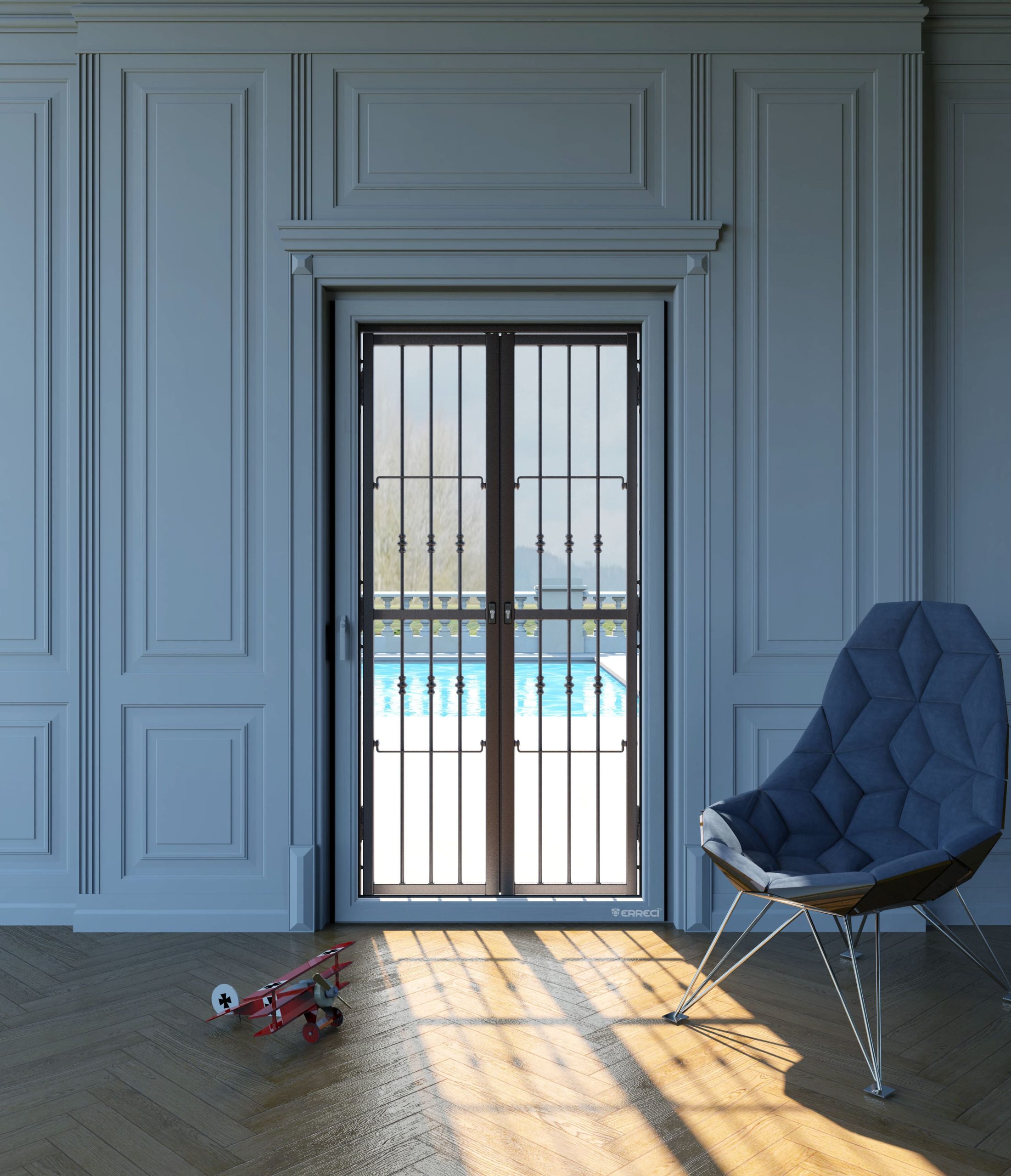 Le grate di sicurezza ERRECI si integrano perfettamente con l’architettura dell’edificio e possono essere installate su edifici nuovi o esistenti. Sono disponibili in diverse versioni: fisse, apribili, scorrevoli o snodate, tutte personalizzabili nelle dimensioni, nelle colorazioni e nei dettagli estetici.